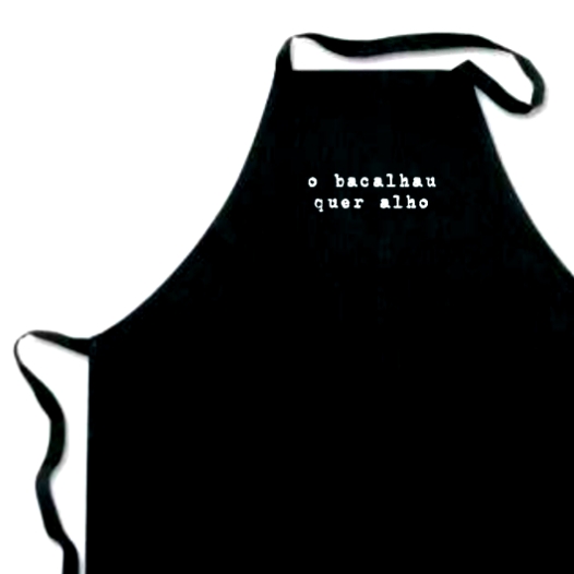 Avental 'o bacalhau quer alho' em preto 16,00 € Desconto de %. IVA incluído. Partilhar Comprar Contactar 8 unidades em stock - Avental 'o bacalhau quer alho' - Preto, 100% Algodão de 140g/m2 - Sem bolso frontal - Corte abaixo do joelho. - Medidas: 65 x 90 cm Tags aventalavental pretocozinharcozzinhagourmetchefmasterchef
