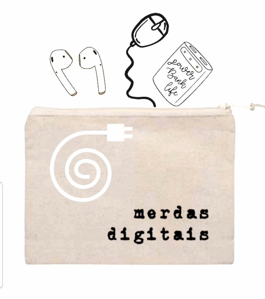 • Bolsa de algodão cru com design de cabo USB e texto 'merdas digitais'