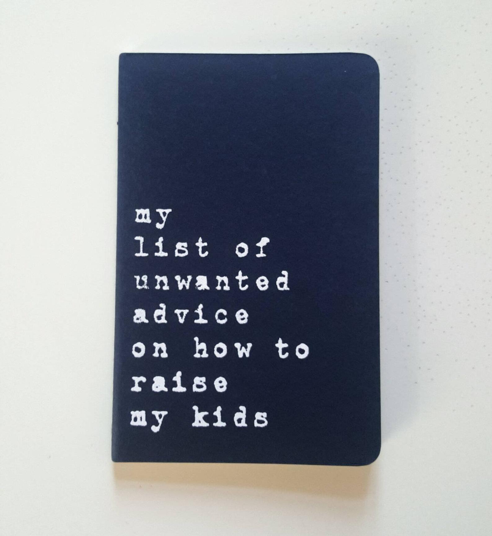 Caderno 'my list of unwanted advice on how to raise my kids' 7,00 € Desconto de %. IVA incluído. Partilhar Comprar Contactar 92 unidades em stock - Caderno MOLESKINE® Cahier pocket-size - Frase aplicada com serigrafia manual - Tamanho: 9x14 cm - 64 páginas de papel acid-free, das quais 16 são desatacáveis por picotado - bolsa no interior da capa posterior MOLESKINE® is a trademark registered by Moleskine S.p.A