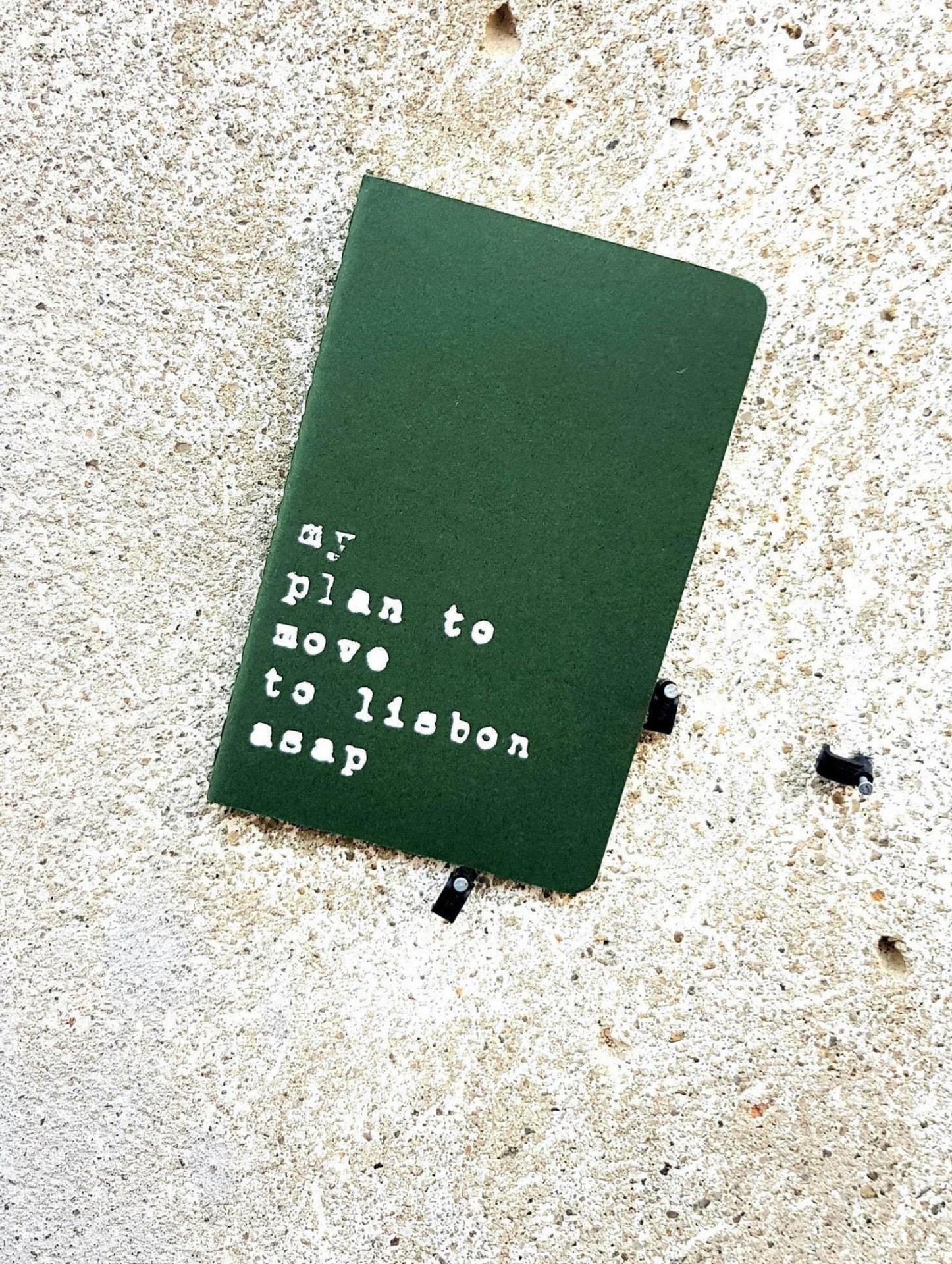 Caderno 'my plan to move to Lisbon asap' 7,00 € Desconto de %. IVA incluído. Partilhar Comprar Contactar 92 unidades em stock - Caderno MOLESKINE® Cahier pocket-size - Frase aplicada com serigrafia manual - Tamanho: 9x14 cm - 64 páginas de papel acid-free, das quais 16 são desatacáveis por picotado - bolsa no interior da capa posterior MOLESKINE® is a trademark registered by Moleskine S.p.A