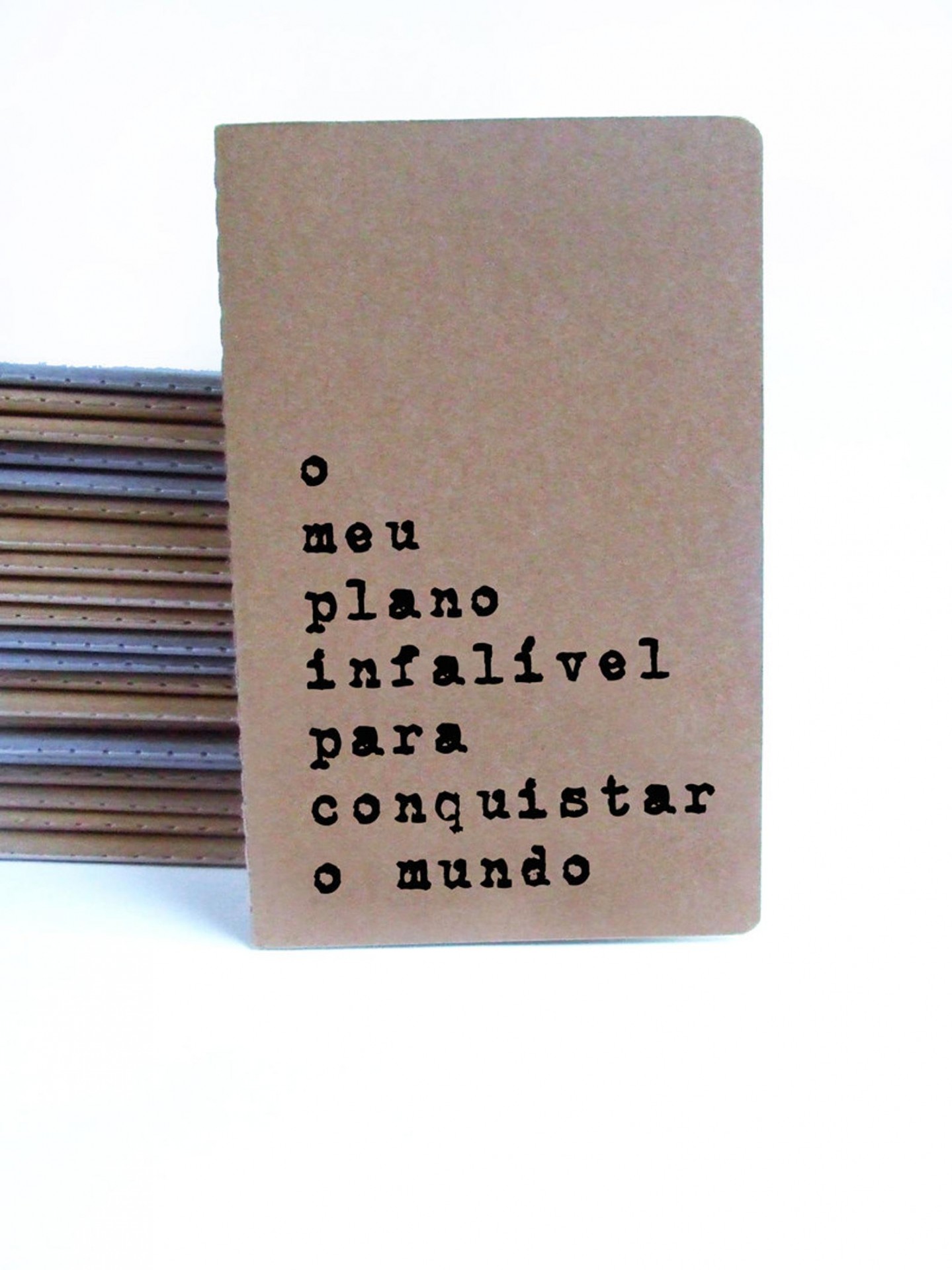 Caderno 'o meu plano infalível para conquistar o mundo' 7,00 € Desconto de %. IVA incluído. Partilhar Comprar Contactar 31 unidades em stock - Caderno MOLESKINE® Cahier pocket-size - Frase aplicada com serigrafia manual - Tamanho: 9x14 cm - 64 páginas de papel acid-free, das quais 16 são desatacáveis por picotado - bolsa no interior da capa posterior MOLESKINE® is a trademark registered by Moleskine S.p.A