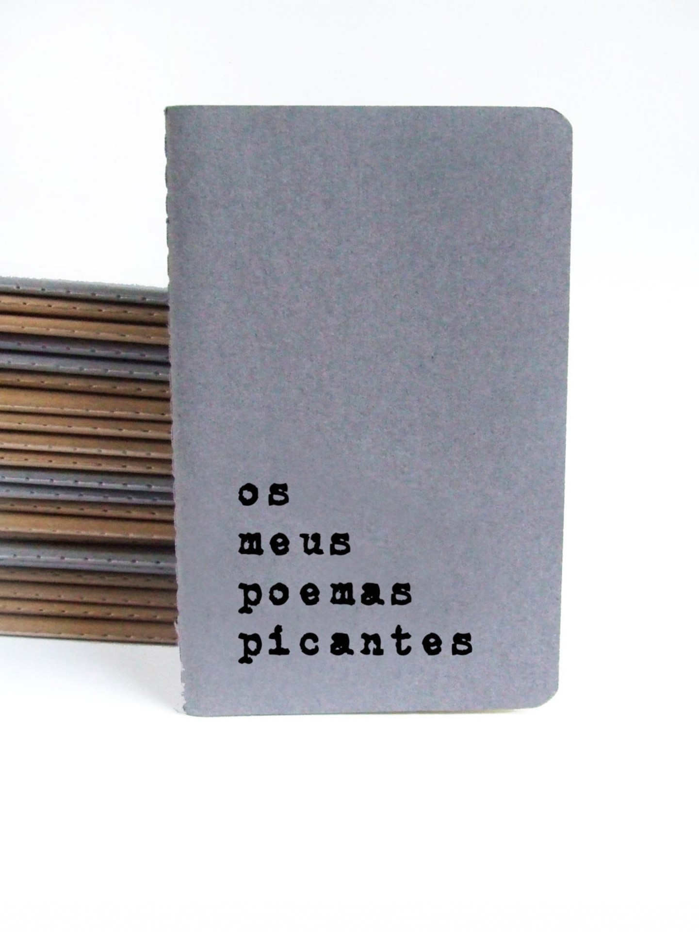 Caderno 'os meus poemas picantes' 7,00 € Desconto de %. IVA incluído. Partilhar Comprar Contactar 10 unidades em stock - Caderno MOLESKINE® Cahier pocket-size - Frase aplicada com serigrafia manual - Tamanho: 9x14 cm - 64 páginas de papel acid-free, das quais 16 são desatacáveis por picotado - bolsa no interior da capa posterior MOLESKINE® is a trademark registered by Moleskine S.p.A