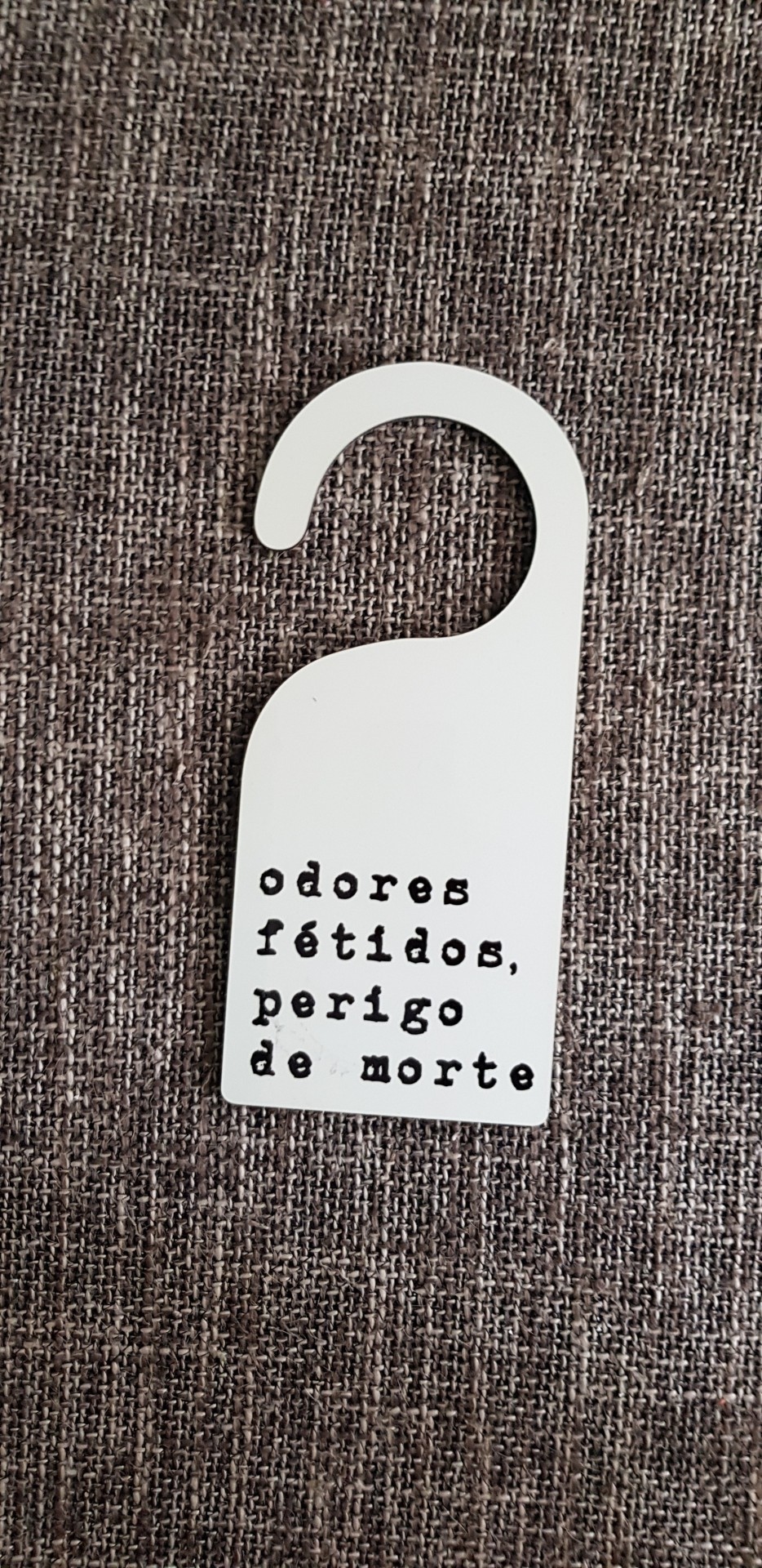 Door hanger 'odores fétidos, perigo de morte' 15,00 € Desconto de %. IVA incluído. Partilhar Comprar Contactar 9 unidades em stock - Door hangers brancos em MDF - Dimensões: 10 x 24 cm - Frase aplicada por sublimação