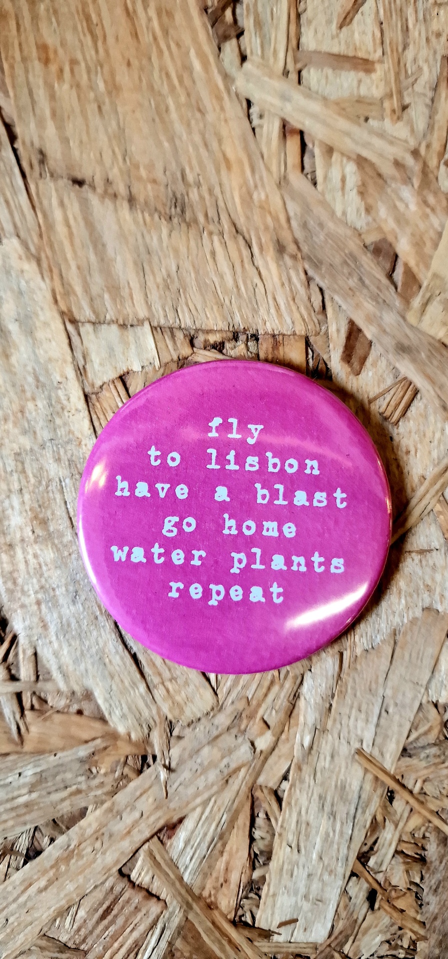 Magnético 'fly to lisbon, have a blast, go back home, water plants, repeat' 5,00 € Desconto de %. IVA incluído. Partilhar Cor Fundo preto e letras brancas Fundo branco e letras pretas Fundo cor de rosa e letras brancas Comprar Contactar 30 unidades em stock - Magnético 'fly to lisbon, have a blast, go back home, water plants, repeat' - Diametro 5,8 cm - Evistem em 3 cores, preto, branco e cor de rosa, de acordo com disponibilidade. Tags magneticosimansiman de frigorificolisbonlisbon magnetlisboaiman lisboalisbon souvenir
