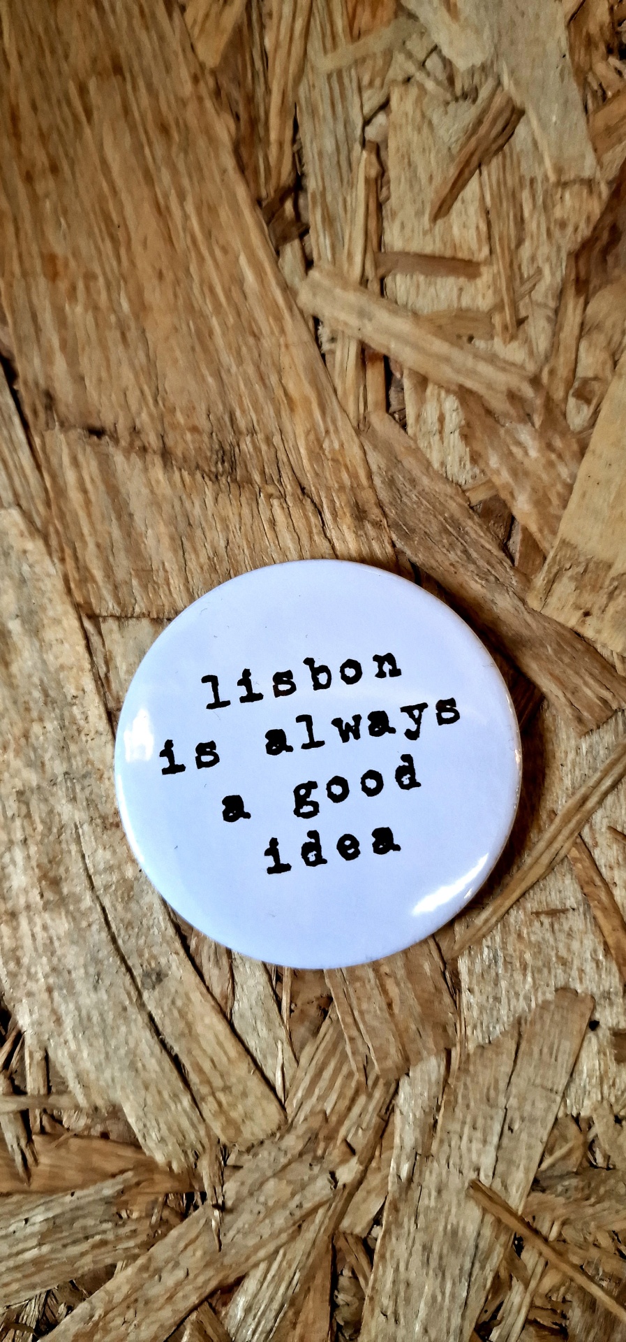 Magnético 'lisbon is always a good idea' 5,00 € Desconto de %. IVA incluído. Partilhar Cor Fundo preto e letras brancas Fundo branco e letras pretas Fundo cor de rosa e letras brancas Comprar Contactar 28 unidades em stock - Magnético 'lisbon is always a good idea' - Diametro 5,8 cm - Evistem em 3 cores, preto, branco e cor de rosa, de acordo com disponibilidade. Tags magneticosimansiman de frigorificolisbon is always a good ilisbon good idealisbonlisbon magnetlisbonsouvenirlisboa Características