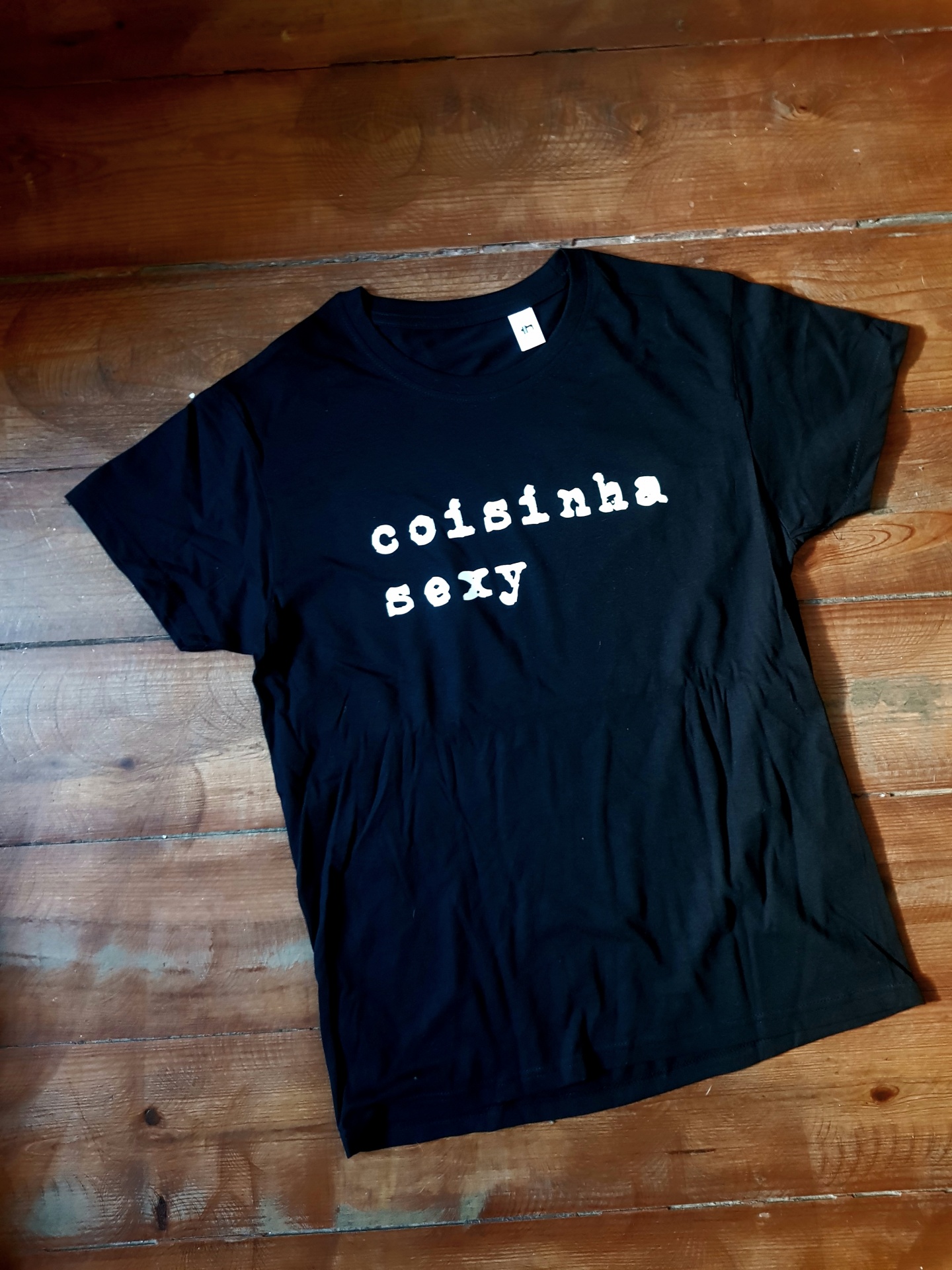 • T-shirt preta com texto branco 'coisinha sexy'