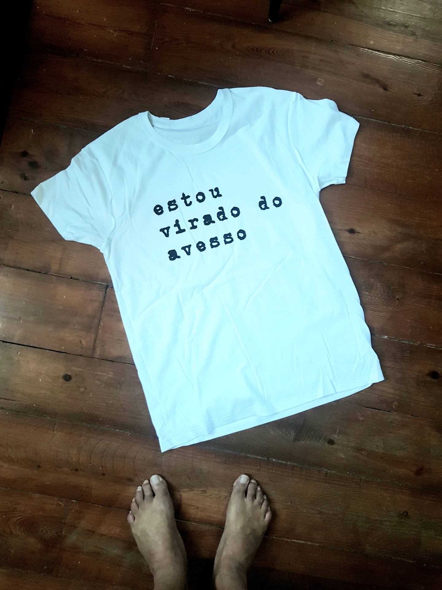 - Atenção: a t-shirt está impressa e é usada do avesso