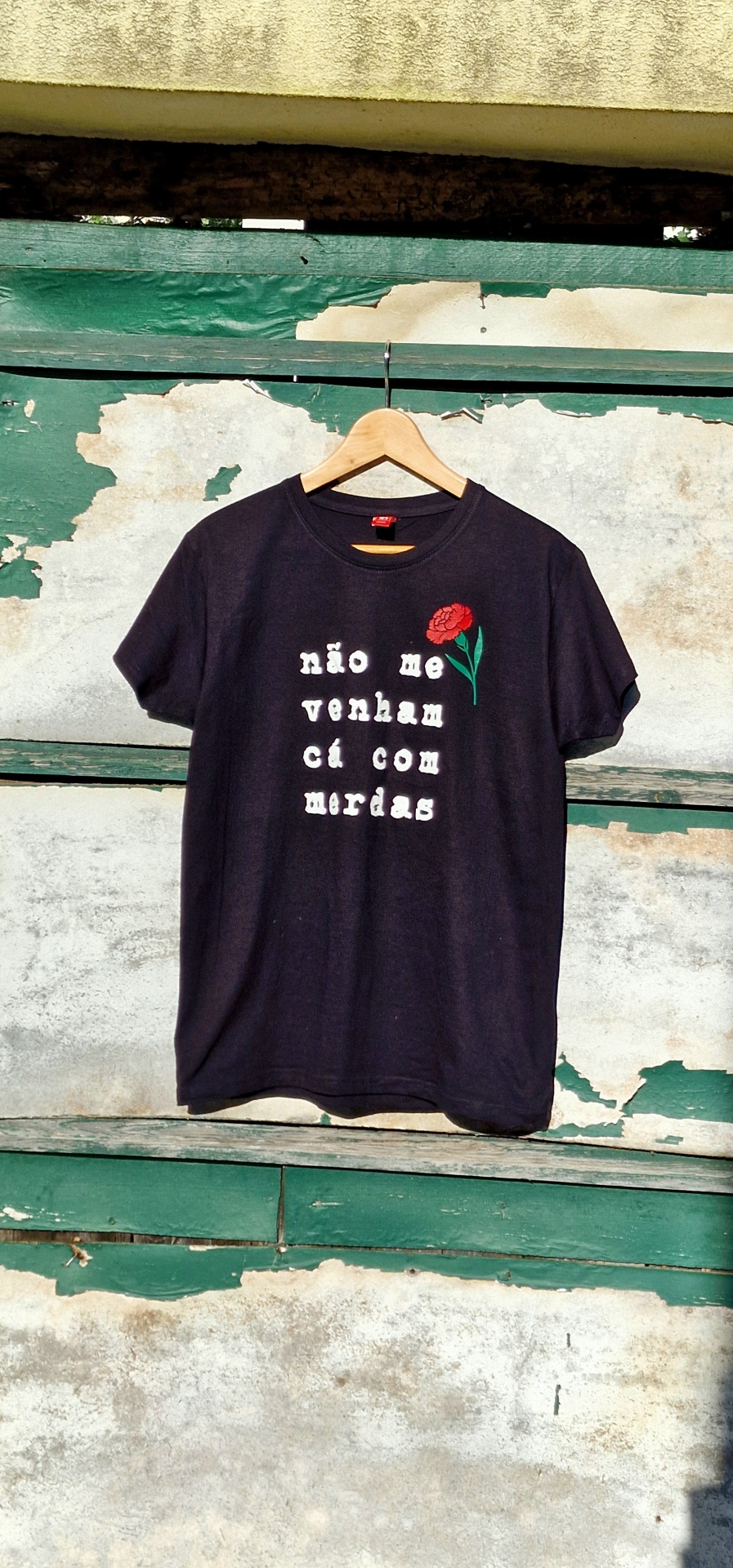 - T-shirt 'não me venham cá com merdas' em preto - Edição 25 de Abril