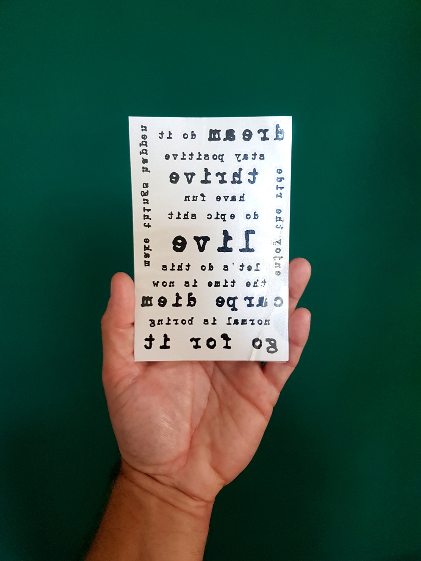 Tatuagens Temporárias - Set #1 6,00 € Desconto de %. IVA incluído. Partilhar Comprar Contactar 12 unidades em stock - Tatuagens temporárias - Folha tamanho A6 com instruções no verso - 14 frases/palavras: - go for it - mormal is boring - carpe diem - the time is now - let's do this - live - make things happen - enjoy the ride - do epic shit - have fun - thrive - stay positive - dream - do it Tags tatuagens temporáriastemporary tatoostemp tatooskalkitosquotestatoostatuagens Características
